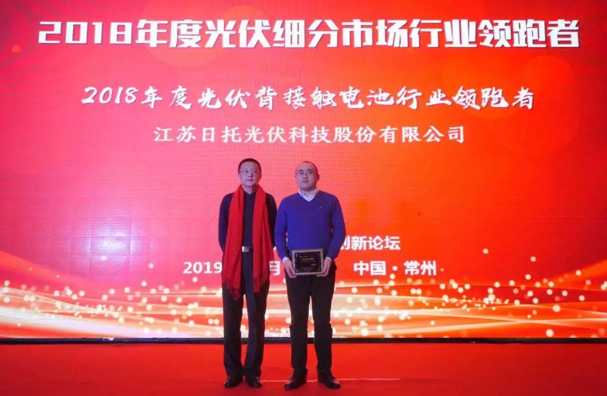 1月15日,第三届光伏领跑者创新论坛年会暨全球光伏行业领跑者峰会在江苏常州盛大召开。作为高效组件领域的领跑企业,日托光伏应邀出席,并折桂2018年度光伏背接触电池行业领跑者奖。