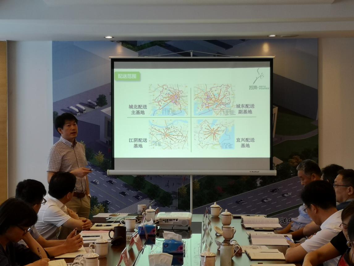 会议上,电子十一院季超院长介绍了城北主基地、城南副基地、城东副基地、江阴配送基地及宜兴配送基地的设计方案和工程建设进展情况。苏南食材公司罗志坚董事长汇报了配送基地建设方案及运营方案设想,并提出建立相关配套工作机制,健全完善应急保障预案。
